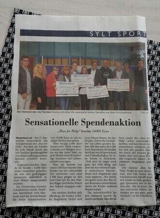 Als Schülerin im 11. Jahrgang warb ich deshalb neben vier Sylter Vereinen bei allen SchülerInnen des Schulzentrums um Ihre Unterstützung für meine Projektidee zu spenden: Ich wollte einer großen Schule in der nördlichen Region Simbabwes Fussballtrikots für ihre Mannschaften finanzieren.
