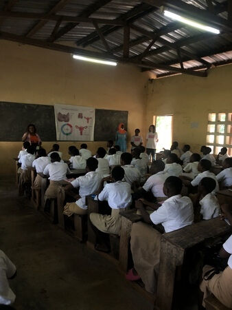 Diesmal ging es letzte Woche, am 1. Dezember, an die CEG (CollĂšge d`Enseignement GĂ©nĂ©ral), die genau zwischen den beiden Dörfern Noelle und AkĂ©pĂ©, NĂ€he LomĂ©, gelegen ist. Unser Lionne-Team wurde unterstĂŒtzt von der lokalen Partnerorganisation Junior Chamber International (JCI), bei der sich ĂŒber den Globus verteilt junge BĂŒrger*innen zusammenschlieĂen, um in ihren lokalen Gemeinden aktiv zu werden und Projekte wie diese zu unterstĂŒtzen.