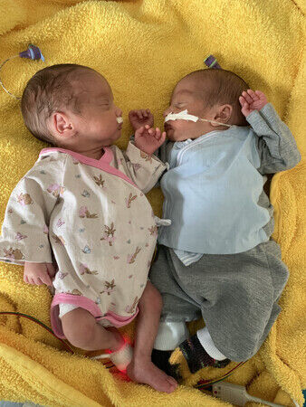 Die Zwillinge haben sich ganz wunderbar entwickelt und konnten die Frühgeborenen-Intensivstation inzwischen verlassen. Sie werden noch ein paar Tage auf der Station K3 versorgt, um weiter an Gewicht zuzunehmen. Und so wie es im Moment aussieht, dürfen die beiden im Februar mit Mama und Papa endlich nach Hause!