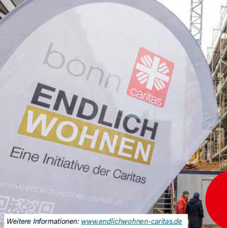 Die Idee von „ENDLICH WOHNEN“ wurde weitergetragen, innerhalb der Stadtbevölkerung, von Mensch zu Mensch, in Initiativen und Vereinen diskutiert und über alle Medien verbreitet. Fast 1.200 Spenden insgesamt waren das Ergebnis – und das Caritas-Team schier überwältigt von der Welle dieser großzügigen Hilfsbereitschaft. Bonner Bürger*innen, in der Region ansässige Firmen, Banken und Vereine haben es möglich gemacht. Konfessionell und nicht konfessionell gebundene Stiftungen aus dem Großraum Bonn und ganz Deutschland haben die Initiative finanziell sehr großzügig unterstützt. Alle zusammen haben tatkräftig an einem sozialen Bonn gebaut und in nur eineinhalb Jahren fast 500.000 Euro gespendet. Herzlichen Dank!