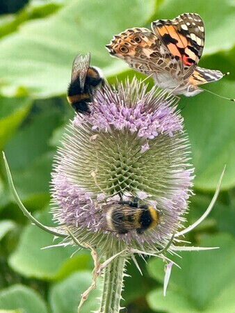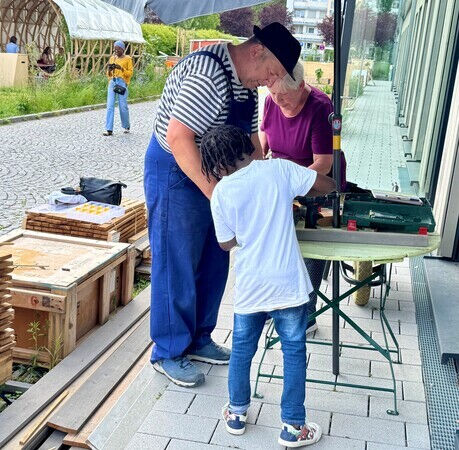 Auch gärtnerisch sind wir mit unserem neuen Garten schon weit gekommen. Wo zu Anfang des Jahres noch tristes Abstandsgrün zwischen Parkplatz und Einkaufszentrum war, gibt es jetzt eine Fülle von Beeten, ein Gartenhaus und bunte Bänke. In offenen Gartenterminen und Vorträgen konnten Nachbar*innen zum Mitgärtnern gewonnen werden, wodurch ein schönes Miteinander aus verschiedensten Kreisen und Altersgruppen entstand.