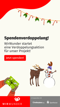 Unterstützt werden wir auch von der Stadtsparkasse München, die zugesagt hat, alle Spenden die ab morgen, Freitag 5.12. ab 9.00 Uhr eingehen, mit bis zu 100€ zu verdoppeln!