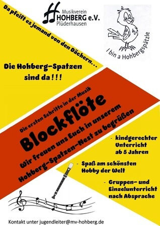 Habt ihr schon gesehen?! Unsere Hohbergspatzen sind wieder aktiv… Der erste Schritt zur Musik war bei vielen von uns die Blockflöte. Daher freuen wir uns sehr, dass wieder - auch dank Eurer Spenden - neue Gruppen gestartet sind und wir außerdem noch Kapazitäten für neue Gruppen haben!