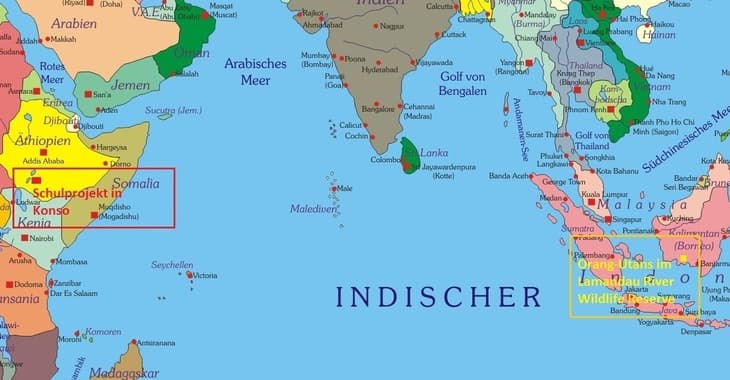 Zum einen habe ich mich für ein Orang-Utan Projekt auf Borneo (Indonesien) entschieden. Letztes Jahr hatte ich die Möglichkeit, diese tollen Tiere im Dschungel Sumatras zu sehen. Illegale Holzfällung, die Errichtung von Palmöl-Plantagen als auch die teils gängige, qualvolle Haltung der Orang-Utans als "Haustiere" bedrohen die Tiere und ihren Lebensraum.