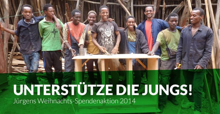 Die gesammelten Spenden kommen zu 100% der „Perspektiven Werkstatt“ in Äthiopien zugute. Das Projekt wurde im Herbst 2013 vom Verein "Addis Perspectives e.V." ins Leben gerufen, bei dem ich (Gründungs-)Mitglied bin. Jeweils sechs Jugendliche von der Straße leben für ein Jahr, gemeinsam mit einem äthiopischen Sozialarbeiter, in einem Haus in Addis Abeba. Morgens gibt’s theoretischen Unterricht, nachmittags wird in der angeschlossenen Werkstatt gearbeitet. So wollen wir den Teilnehmern Fähigkeiten vermitteln, die ihnen helfen eine Arbeits- oder Ausbildungsstelle zu finden.