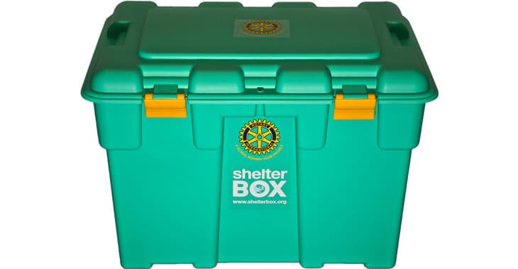 Zitat der Organisation: "Mit den grünen Überlebenskisten hilft ShelterBox notleidenden Menschen in Katastrophen- und Krisengebieten auf der ganzen Welt, die über akute Ersthilfe hinaus längerfristig versorgt werden müssen — schnell und effektiv."
