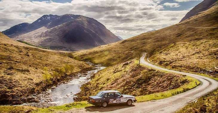 Hierbei fährt man mit einem mind. 20 Jahren alten Auto von England über Wales nach Schottland.