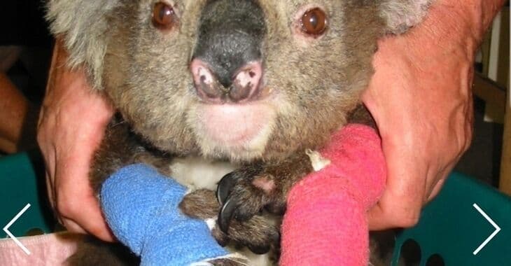 Nothilfe für bei Buschfeuern verletzte Koalas
