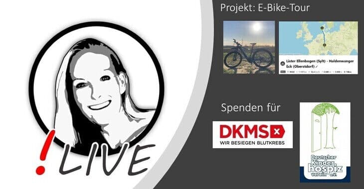 Ich werde innerhalb von 8 Tagen mit dem E-Bike vom nördlichsten Sandkorn (Lister Ellenbogen) bis zum südlichsten Grashalm Deutschlands (Haldenwanger Eck) (Distanz ca. 1.115 km) fahren. Die Tour startet am 22.05.2021.