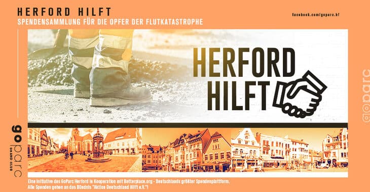 HERFORD HILFT! Gemeinsam unterstützen wir, der GoParc Herford zusammen mit den Gewerbetreibenden, Gastronomen und Unternehmern Herfords, mit euch die Opfer der Flutkatastrophe!