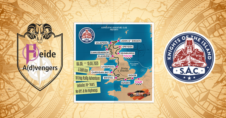 Wir, die HeideA(d)vengers, fahren im Mai mit drei Autos und 6 Personen die UK-Rallye "Knights of the Island 2025".