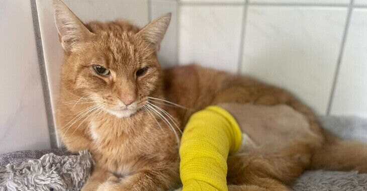 Im August 2025 wurde Pumuckl wurde in Jena-Lobeda gefunden. Er war schwer verletzt und musste sofort tierärztlich versorgt werden. Er hat eine schwere Fraktur des Hinterbeins sowie einen Schwanzabriss erlitten. Wir konnten dank eurer Hilfe die hohen Kosten für die tierärztliche Versorgung begleichen.