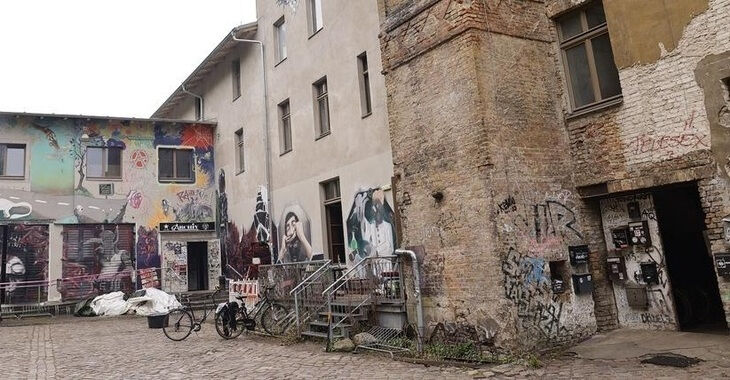 First occupied in 1994, cleared by police in '97 and consequentially reseized by the former occupiers. Since then it has been been cared for and been operated by multiple commited creative artists* and selfless people commited to our cause. In our house we live cultural, politcal, sporty and last but not least artistic DIY- Culture.