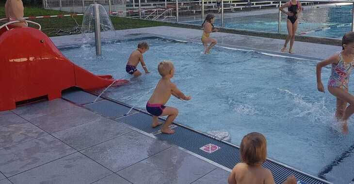 Unser Kinderplanschbecken wird zum Saisonstart ein neues Spritzgerät enthalten. Aus den Fühlern kommt ein feiner Strahl, der gerade unseren Kleinsten viel Freude bringen wird.
