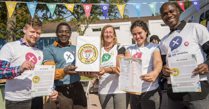 Freiburger Wahlkreis 100%, founded 2002, is an independent, volunteer and multi-ethnic organisation in the south-west of Germany. Our volunteers come from all continents of the world and work together to gain voting rights in local elections for all residents regardless their nationality. The right to vote is for us a fundamental democratic value. We firmly believe that everyone subject to the living conditions of a community should not be denied influence over these conditions. The right to vote and the right to run for office does ensure equal influence.