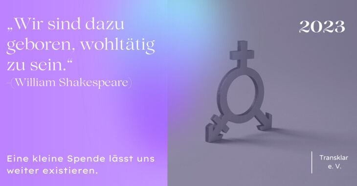 To continue our work and help even more people, we depend on your donation. Every euro you give helps us to do even more good and support trans:persons on their way. Your donation will directly benefit the people who need our help the most. You can be sure that your money will be put to good use!