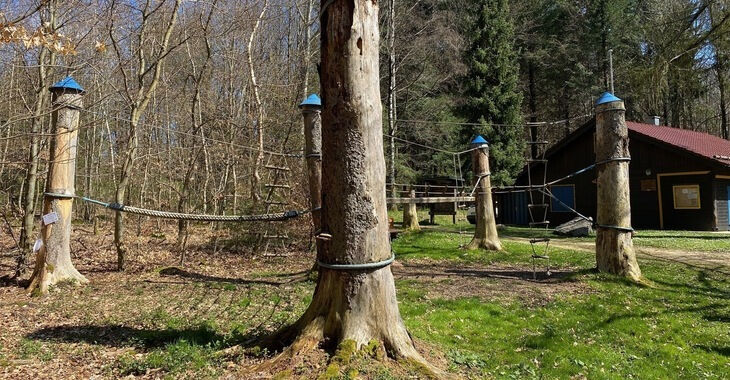 Erneuerung Niederseilklettergarten bei der Schwäbischen Albvereinshütte Heubach. Die Kinder und der SAV Heubach freuen sich über die tolle Abwicklung und Unterstützung zur Finanzierung des Projektes.
