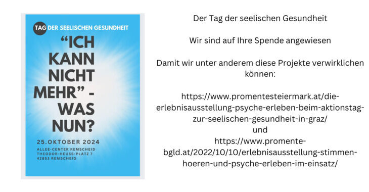 continue readingWir freuen uns mitteilen zu dürfen, dass am 25.10.2024 erfolgreich der Tag der seelischen Gesundheit in Remscheid stattfinden konnte. 14 verschiedene Träger haben ihre Stände im Allee Center aufgebaut und mit den verschiedensten Angeboten die seelische Gesundheit in den Vordergrund gerückt. Zahlreiche Besucher*innen konnten Infogespräche führen und konkrete Hilfsangebote kennenlernen.