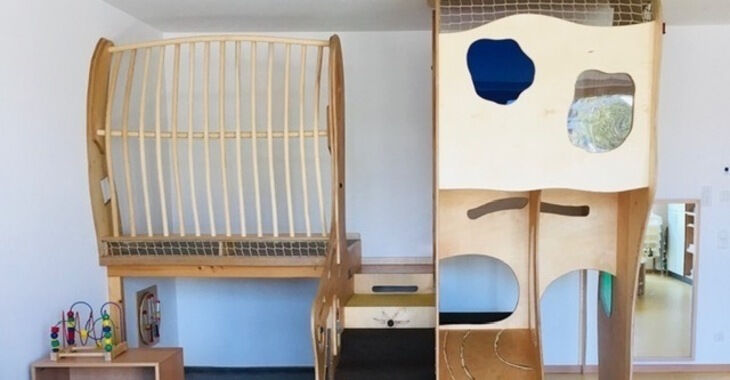 Die Kinderkrippe Philippus wurde in 2020 um eine dritte Krippengruppe erweitert. Die neu gegründete Hummelgruppe hat damals den Einbau mit Spielpodest und Rutsche aus dem Altbau übernommen und zusammen mit einer Fachfirma im neuen Gruppenraum wiederaufgebaut. Leider hat sich jetzt, 5 Jahre danach, immer mehr herausgestellt, dass der Einbau sehr viel Platz einnimmt und sich im pädagogischen Alltag einfach nicht gut bewährt.