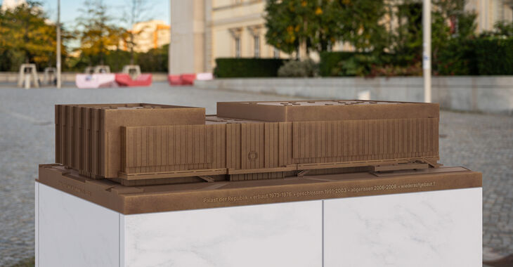 Currently, there is no indication on Schlossplatz in Berlin-Mitte that the baroque Schloss did not always stand on this site. To change this, we are planning to install a 1:150 scale bronze model of the Palast der Republik, which stood on the same site from 1976 to 2006, next year. We need your support to make this happen!