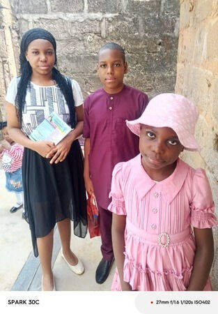 „Familie Esiovwa schlägt sich dank der Spenden weiterhin tapfer durch in Nigeria! Die drei Kinder gehen fleißig zur Schule und bringen gute Noten nach Hause. Ziel ist, einen guten Schulabschluss, besser noch: eine anschließende Berufsausbildung zu ermöglichen! Die Eltern versuchen, ihre gesundheitlichen Belastungen zu managen, doch manchmal kommt es zu Krisen, wie kürzlich, als die Mutter Faith Ilhobe mit einer akuten Blinddarmentzündung ins Krankenhaus eingeliefert werden musste! Dies hat die finanziellen Mittel erneut stark angegriffen, daher die dringliche Bitte um weitere Unterstützung! Die Familie dankt von Herzen und betet für alle Spender*innen!!“