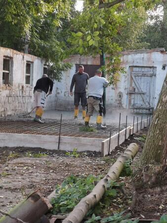 Die andere Hälfte des Stalls wird nun unser Esel- und Schafstall. Dazu gab es eine neue Bodenplatte, auf der wir gerade den Stall für die Esel und Schafe fertigstellen.