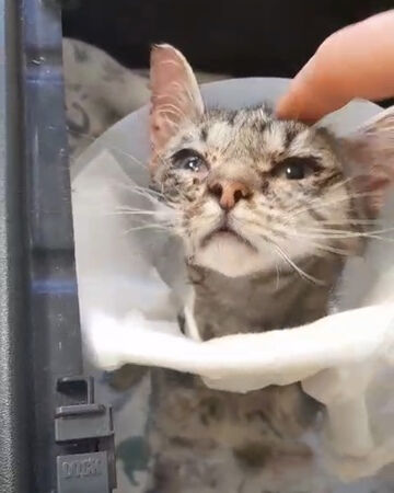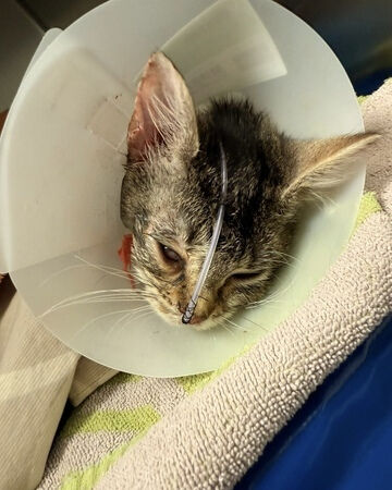 Nachdem Suse schon einen Tag nach ihrer Ohrpoylpen-OP entlassen wurde und wieder auf ihrer Pflegestelle zuhause war, verschlechterte sich ihr Zustand über Nacht leider so sehr, dass wir sie wieder in den Notdienst der Klinik brachten und sie dort stationär aufgenommen wurde. Gott sei Dank, denn es hatte sich ein fieser Abszess gebildet und die Entzündung belastete ihren Körper sehr.