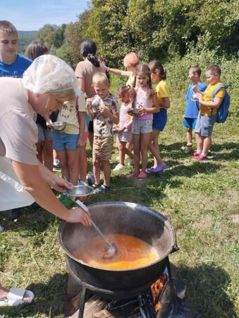 Es sind jetzt 3 Monate Sommerferien in der Ukraine. Wir kümmern uns um die Kinder von Binnenflüchtlingen und bieten ihnen kostenlos ein Sommercamp in Peretschyn an, in dem sie mit einheimischen Kindern zusammen spielen, Ausflüge machen, schwimmen, Sport machen, singen, tanzen, lernen können. Wegen der häufigen nächtlichen Raketenalarme ist leider eine Übernachtung nicht möglich. Die Kinder werden täglich mit Schulbussen abgeholt und wieder nach Hause gebracht.