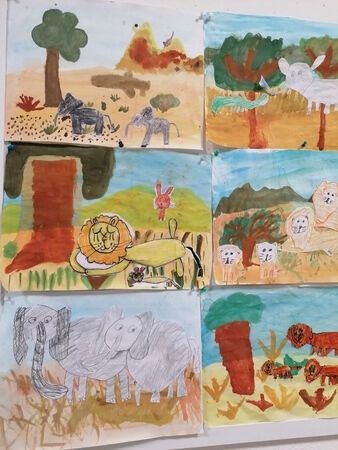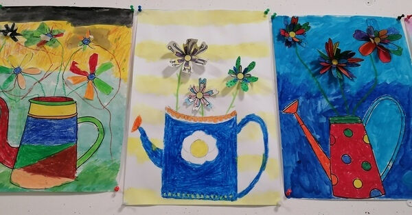 Kunstwerke unserer Grundschüler und Grundschülerinnen in Überlingen am Ried ! Toll.
