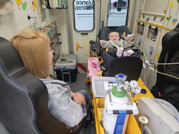 The small family – mother, father, and eight-month-old Milana – was picked up in the early morning hours after three weeks of preparation from the remote Volynska Oblast, where no medical care is available. A children's ambulance safely transported them to Bavaria in a 15-hour journey.