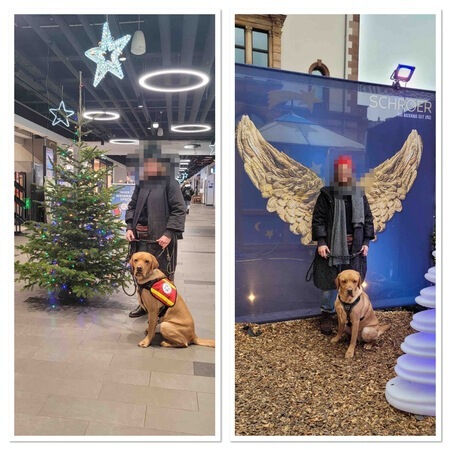 Weihnachtliches Training. Zweistein hat mittlerweile 10 Stunden der 60 stündigen Spezialausbildung absolviert und er erweist sich als sehr gelehriger Schüler. Wir müssen aber am Ball bleiben und hoffen, mit eurer Hilfe auch die restlichen Stunden finanziert zu bekommen.