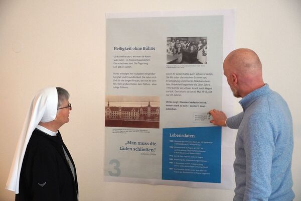 In den vergangenen Wochen ist rund um die neuen Infotafeln über das Leben und die Botschaft der seligen Schwester Ulrika viel passiert. Mit großem Engagement wurde gestaltet, getextet und abgestimmt. Schon jetzt lässt sich erahnen, wie eindrucksvoll die Tafeln später wirken werden. Wir freuen uns sehr auf den Moment, in dem sie ihren Platz im Vorraum der Krypta finden.