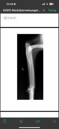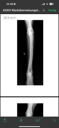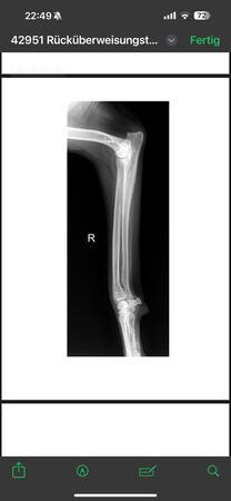 Patellasehne, Elle proximal verdickt und Fehlstellung (alte, verheilte Fraktur?), keine deutlich