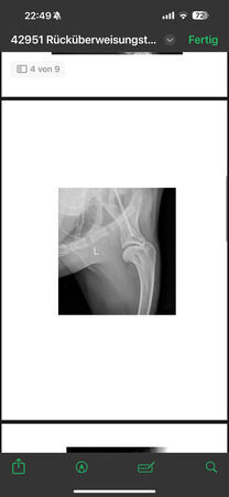 bekommt ab und zu Metacam, Pflegestelle meint Schmerzen kommen eher von vorne, besonders li.,