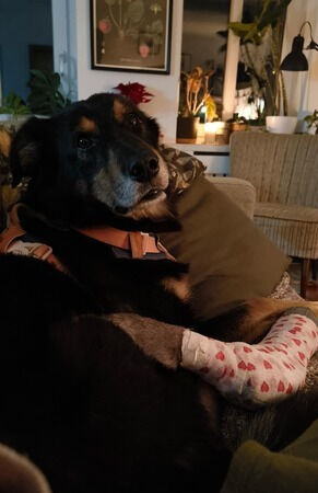 Diese Woche war sein Check-up in der Tierklinik in Langenhagen und die Ärztin ist mehr als zufrieden mit der postoperativen Entwicklung. Dafür, dass das Bein seit vier Wochen Verband und Schiene trägt, sieht es top aus👍🏻. Laut der Ärztin hat sich sein Gangbild im Vergleich zur letzten Kontrolle auch noch mal deutlich verbessert. Ein Schmerzmedikament haben wir in Absprache mit der Ärztin weglassen dürfen, und auch ohne läuft er weiter prima 😇.