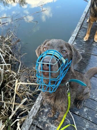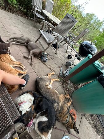 Er macht Fortschritte an der Leine, kann mittlerweile auch in schwierigeren Situationen besser bei sich bleiben und zeigt erste Verbesserungen im Umgang mit anderen Hunden. Auch neue Umgebungen, wie beim Campen oder auf Reisen, meistert er zunehmend stabiler. Alleine bleiben klappt sogar richtig gut.