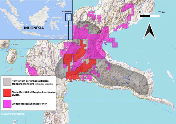 Die unkontaktierten Hongana Manyawa, die wirklich nachhaltig leben, werden im Namen eines angeblich nachhaltigen Konsums ausgelöscht. Das ist skandalös und es ist illegal.Darüber hinaus haben unsere Nachforschungen ergeben, dass das französische Bergbauunternehmen Eramet, das die größte Mine auf dem Gebiet der unkontaktierten Hongana Manyawa betreibt, seit mehr als zehn Jahren von den schwerwiegenden Risiken für die 500 Unkontaktierten weiß.