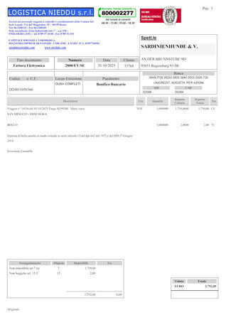 Der größte Teil des Spendenbtrags wird für die Transportkosten von 22 Paletten und insgesamt 23 Tonnen hochwertigen Hundefutters aus der Spendenaktoion "Hilfe für die Vergesenen 2025", die im Oktober nach Sardinien geliefert wurden, verwendet.