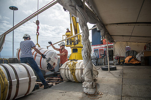 Auf der Sea-Watch 3 werden neue Rettungsinseln installiert. Foto: Boris Nienhaus — sea-watch.org