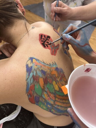 Nur zwei Wochen später verlieh eine zweite Gruppe von Müttern lebensverkürzend erkrankter Kinder ihrer bunten Vielfalt aus gemachten Erfahrungen in einer kreativen Einheit durch Bodypainting Ausdruck. So wurden verborgene Kräfte und innere Stärken sichtbar.