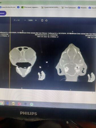 Vor ein paar Tagen haben wir eine zweite kleine Katze namens Vesnushka operiert. Wir haben sie am 19. September letzten Jahres in der Nähe des Zauns unserer Nachbarin Natalia aufgelesen, die sich gerade mit ihrer Freundin unterhielt und das Kätzchen nicht sah. Und das kleine Kätzchen, das etwa einen Monat alt war, sass still im Gras, ohne dass sie es sah. Und als sie es sah, war sie schockiert, aber sie weigerte sich, es aufzunehmen (ihre eigenen Katzen + schlechte Gesundheit + familiäre Umstände). Sie versuchte immer wieder, die Katze zu finden, die dieses Baby zur Welt gebracht hatte, und eines Tages, als sie zwei unbekannte graue Katzen auf ihrem Grundstück sah, rief sie mich an und schrie ins Telefon: „Margarita, komm schnell, ich habe die Eltern dieses Kätzchens gefunden!“ Ich eilte zu Natalias Garten und sah dort... meine alte Katze Agafya und einen jungen Kater Boris, natürlich kastriert)). Später fanden wir noch heraus, dass jemand, der eine Katze hatte, die Kätzchen zur Welt gebracht hatte, sie einfach an verschiedenen Orten aussetzte. Wir hatten Glück, denn eine andere Nachbarin hatte 3 Kätzchen an ihren Zaun geworfen bekommen! Aber sie nahm sie Gott sei Dank alle auf.Die Gesundheit unseres kleinen Mädchens erwies sich als zerbrechlich, und solange sie bei uns lebt, solange wir sie behandeln, aber die Behandlung half nur eine Zeit lang. Als die Medikamente nach einer Weile abgesetzt wurden, ging es ihr immer schlechter.Wir mussten eine Operation durchführen - CT + Rhinoskopie - und haben auch viele verschiedene Untersuchungen gemacht.Was zeigte der CT-Scan? Parodontitis, Rhinosinusitis, Otitis externa und Otitis media beidseitig, Polype im linken äußeren Gehörgang, Frontitis, Lymphadenopathie. Bakteriologische Kulturen ergaben Staphylokokken und Streptokokken, andere Tests zeigten Kalzivirose und Mykoplasmose. Uns wurde ein geeignetes Medikament verschrieben und wir setzen die Behandlung fort....Die Klinik gewährte uns als Tierheim einen Rabatt von 50 % und wir zahlten nur 250 Euro, aber selbst dieser Betrag ist für uns sehr hoch, da wir viele Tiere in unserer Obhut haben.