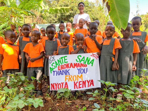 Wir danken allen Spender*innen ganz herzlich für die bisherige Unterstützung. Dank eurer Hilfe konnten wir die Arbeit mit den Menschen vor Ort realisieren. Durch Spenden kann diese Arbeit auch 2026 fortgeführt werden – sei es durch die Finanzierung von Schulungsmaterialien, Saatgut, Setzlingen, Werkzeugen oder durch die Aufforstung der Nyota-Gärten zur Versorgung der KiTa-Kinder. Jede Unterstützung hilft, Familien unabhängiger zu machen und Kindern eine gesunde Zukunft zu ermöglichen.