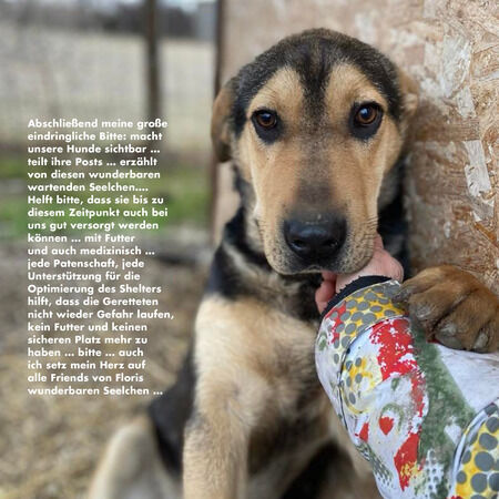 Abschließend meine große eindringliche Bitte: macht unsere Hunde sichtbar … teilt ihre Posts … erzählt von diesen wunderbaren wartenden Seelchen…. Helft bitte, dass sie bis zu diesem Zeitpunkt auch bei uns gut versorgt werden können … mit Futter und auch medizinisch … jede Patenschaft, jede Unterstützung für die Optimierung des Shelters hilft, dass die Geretteten nicht wieder Gefahr laufen, kein Futter und keinen sicheren Platz mehr zu haben … bitte … auch ich setz mein Herz auf alle Friends von Floris wunderbaren Seelchen.