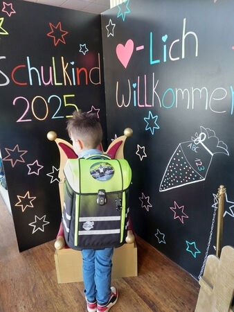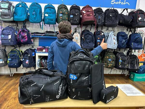 Wir gehen mit erwerbsarmen Familien Schulranzen in einem Fachgeschäft kaufen.